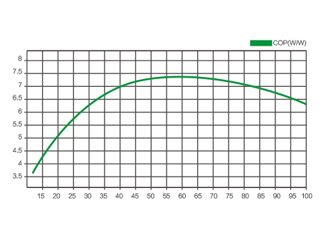 制冷劑分布均勻,溫度場優化程度高,大幅提高了機組的蒸發溫度,換熱效率更高,搭配滿液式冷水機組專用螺桿壓縮機,制冷量和能效進一步提高,能效達到國家標準,COP值可達6.2.