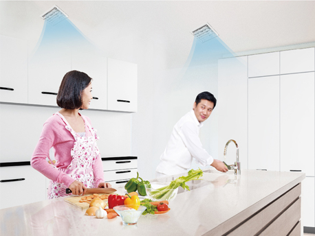 情侶送風:廚享特設雙出風口,開啟時,兩個風口從不同位置出風,增加夫妻搭檔烹飪的 樂趣。 定點送風:設置定點送風,直吹人體,能快速降低燥熱感,讓您享受清涼烹飪,同 時 避免大范圍送風產生的能耗。