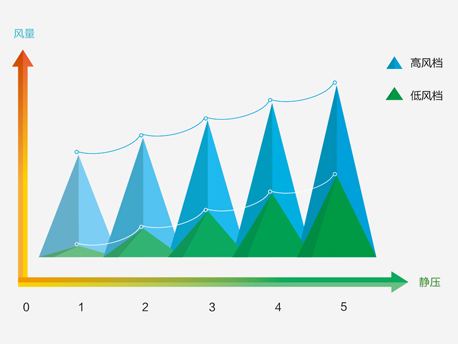 特設五種風量組合,大小風量隨心選擇,每組風量搭配高低風擋,調節平滑精準,實現更舒適的制冷效果。